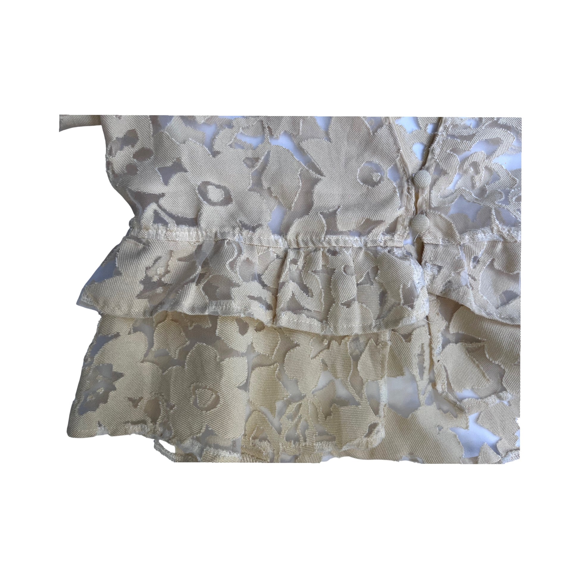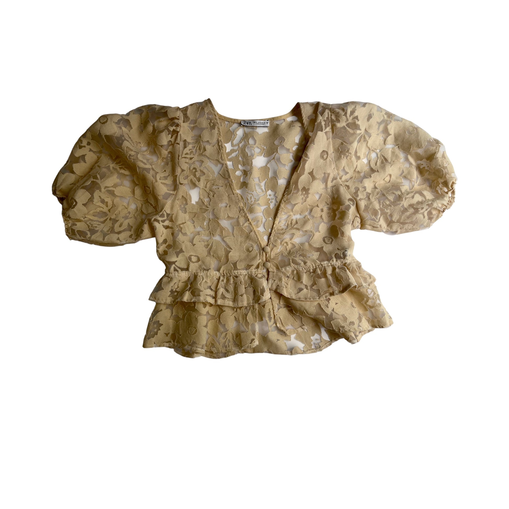 Blusa Zara beige de encaje floral con mangas globo – Talla M