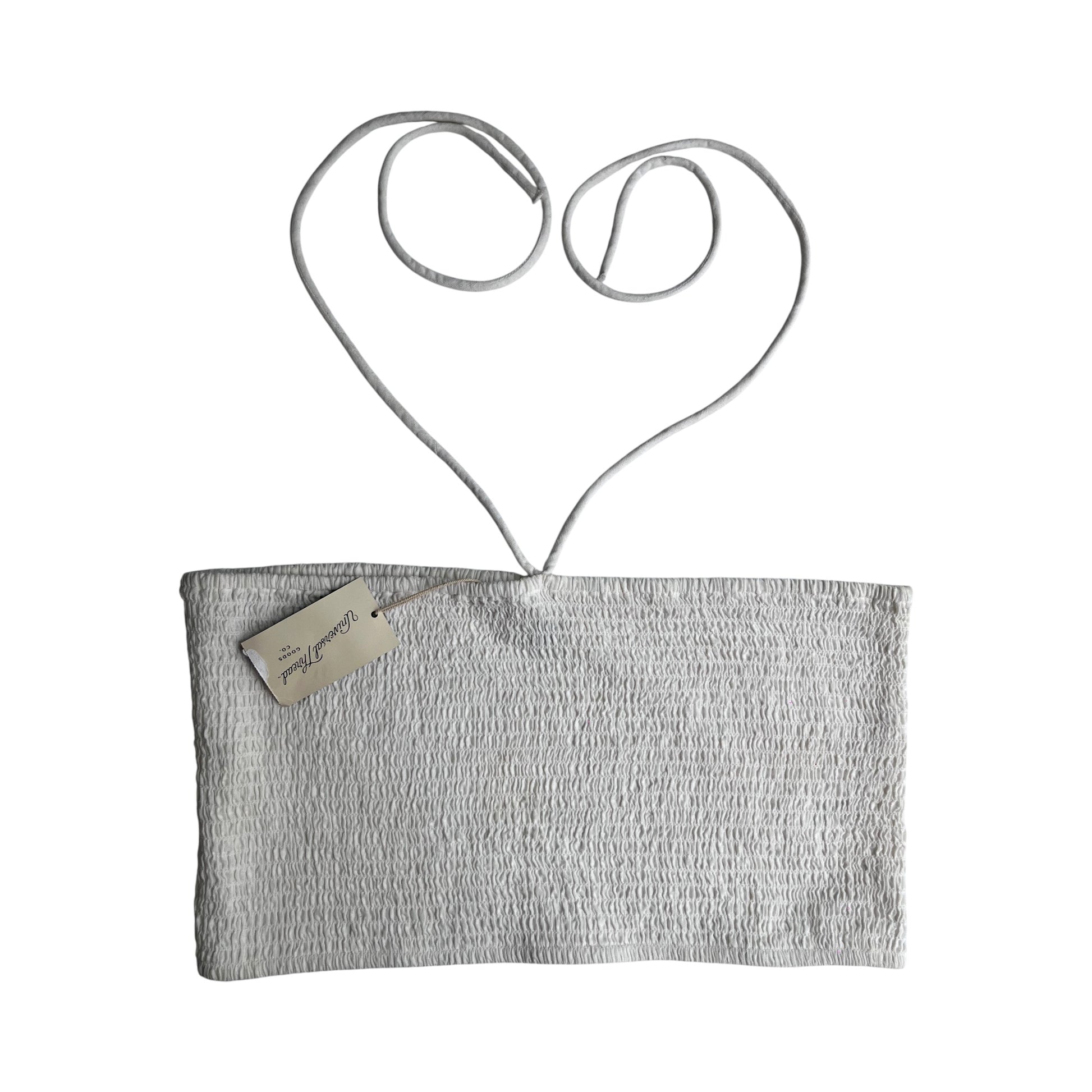 Top Universal Thread en color blanco, estilo bandeau con diseño fruncido elástico que se adapta al cuerpo. Incluye tiras finas ajustables para mayor soporte y versatilidad. Perfecto para un look fresco y moderno en verano o para combinar en capas.